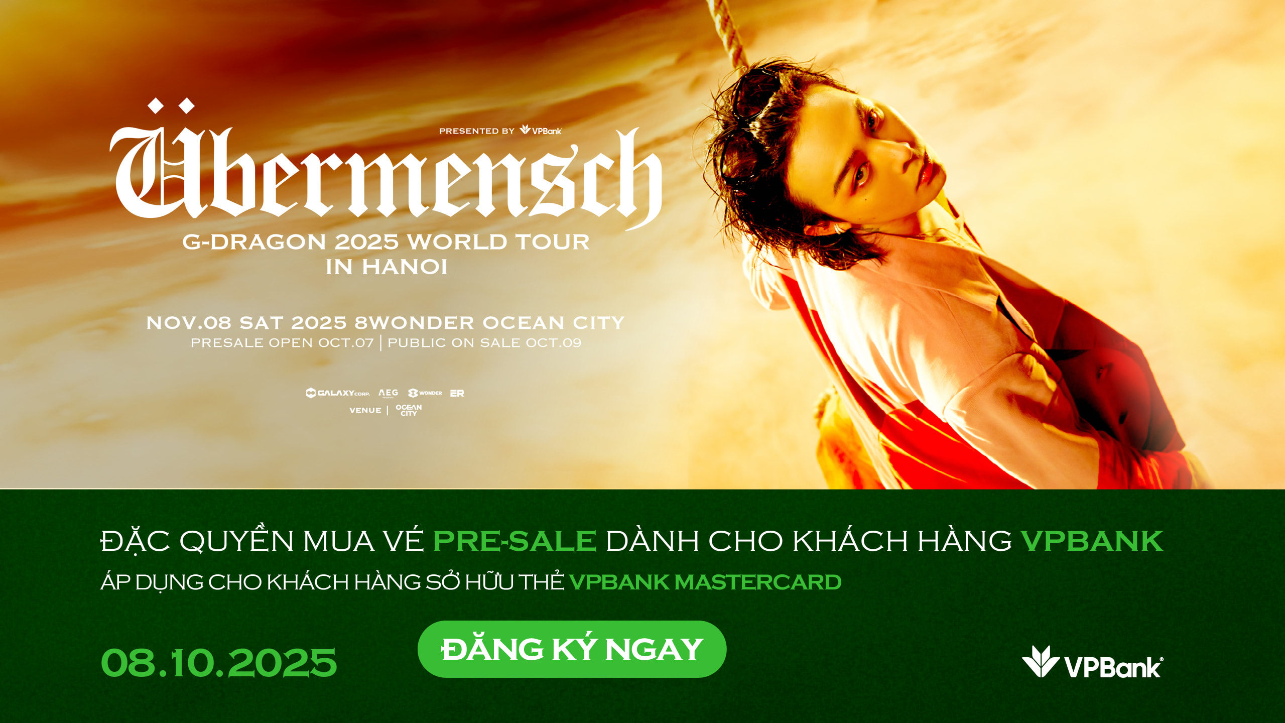 Tiếp nối hai thương hiệu trên, VPBank trở thành cái tên nổi bật khi góp phần đưa G-DRAGON quay trở lại Việt Nam thông qua Übermensch World Tour. Việc đứng sau một dự án tầm cỡ quốc tế không chỉ tạo ra hiệu ứng truyền thông mạnh mẽ mà còn giúp thương hiệu định vị mình như một đơn vị có năng lực tổ chức, đủ sức đồng hành với những nghệ sĩ hàng đầu châu Á.