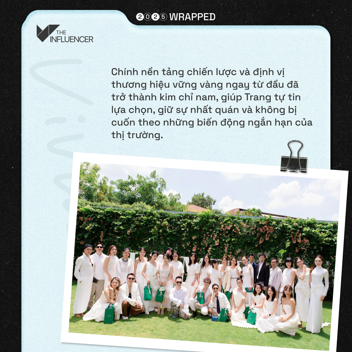 Trang tin rằng thời gian là một thước đo công bằng. Có những thời điểm, sự việc có thể bị nhìn nhận lệch đi, nhưng về lâu dài, bản chất của một con người sẽ dần được thể hiện rõ. Vì vậy, Trang hiếm khi rơi vào tình huống phải xử lý khủng hoảng với influencer, bởi ngay từ đầu, Trang đã ưu tiên lựa chọn những người mình tin tưởng và hiểu rõ họ đại diện cho giá trị gì. Thay vì vội vàng “call out” (công khai chỉ trích, phán xét trước dư luận) hay cắt đứt mối quan hệ, đôi khi việc để thời gian lên tiếng lại là một lựa chọn điềm tĩnh và nhân văn hơn.