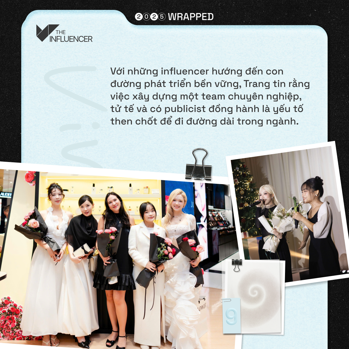 Tóm lại, với những influencer hướng đến con đường phát triển bền vững, Trang tin rằng việc xây dựng một team chuyên nghiệp, tử tế và có publicist đồng hành là yếu tố then chốt để đi đường dài trong ngành.