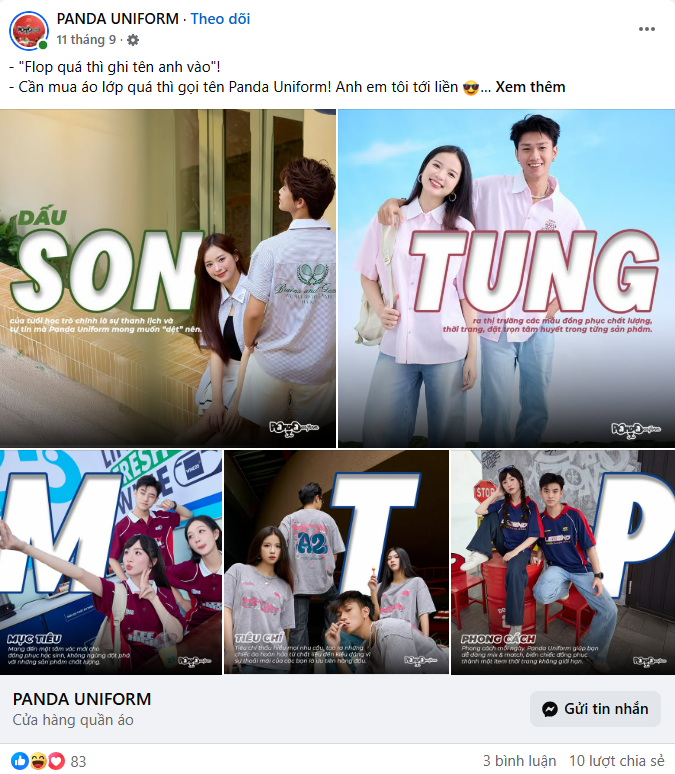 Bài đăng bắt trend “flop quá thì cứ ghi tên anh vào” của shop đồng phục trên Facebook