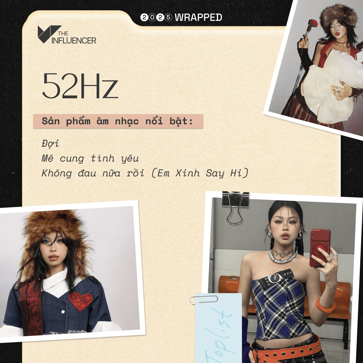 Dù đã thành công ra mắt với nhiều bản hit trong năm 2024, nhưng phải đến 2025 cái tên 52Hz mới ghi dấu ấn mạnh mẽ trên bản đồ Vpop và trở thành một trong những gương mặt nổi bật tại Em Xinh Say Hi.