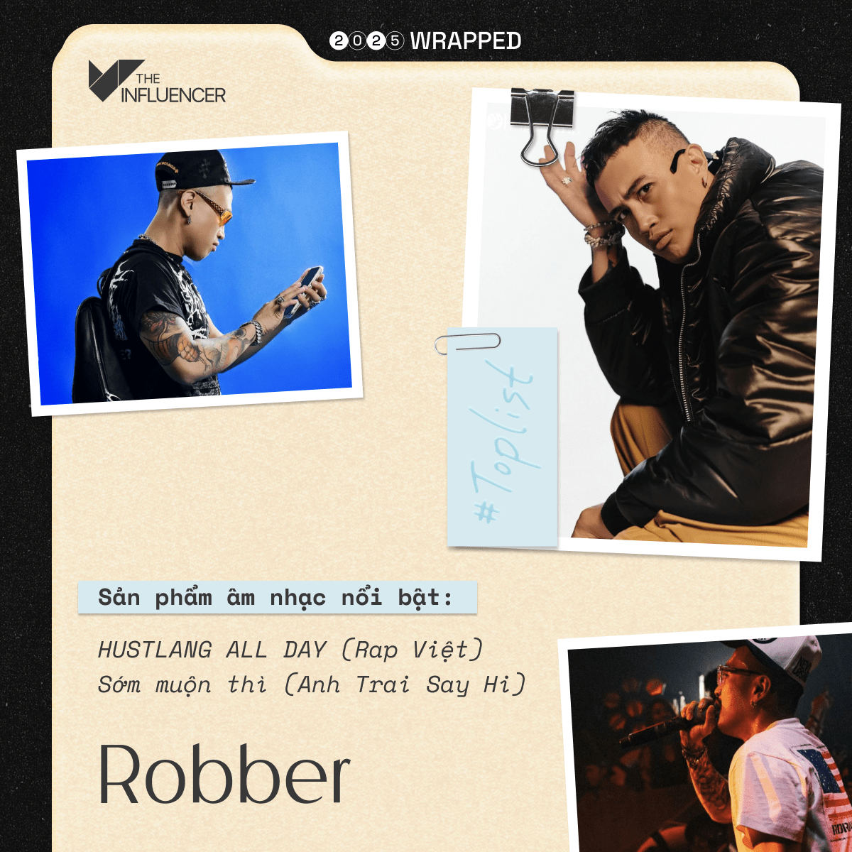 Năm nay đánh dấu một bước ngoặt thú vị trong sự nghiệp của rapper Robber khi anh không chỉ khẳng định vị thế trong làng V‑rap mà còn mở rộng hình ảnh với khán giả đại chúng qua chương trình Anh Trai Say Hi mùa 2.