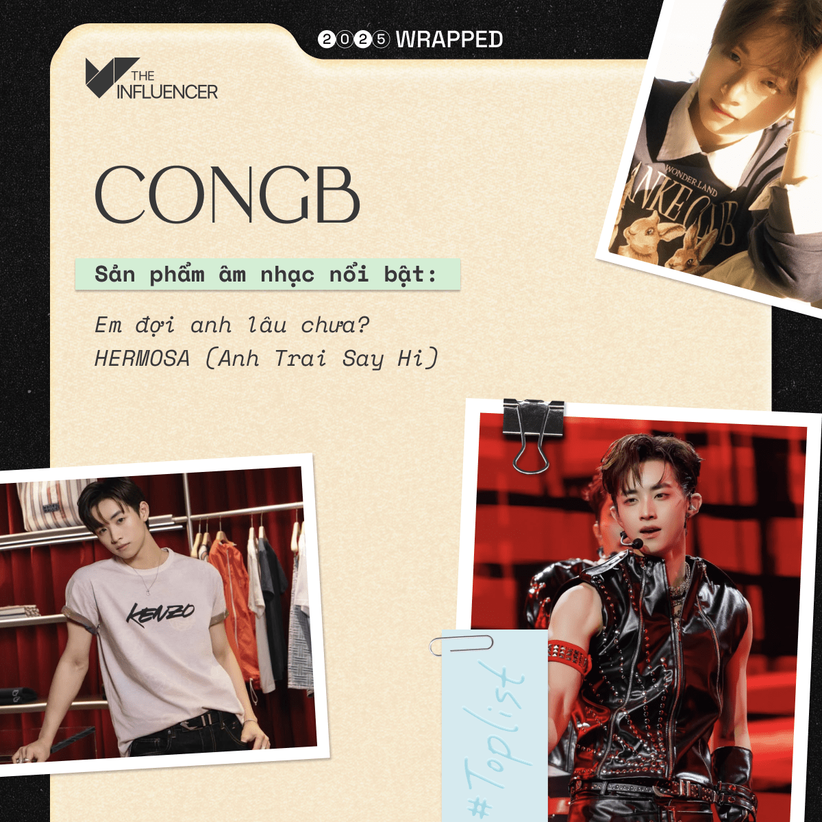 CONGB đã ghi dấu bước trưởng thành trong âm nhạc khi vừa củng cố vị thế với khán giả trẻ vừa dần khẳng định phong cách và bản sắc riêng trên các sân khấu Vpop trong năm nay. Sau hành trình rèn luyện tại Hàn Quốc và kinh nghiệm từ chương trình Boys Planet, CONGB trở về Việt Nam với tinh thần cầu tiến và quyết tâm xây dựng hình ảnh nghệ sĩ đa năng, vừa hát vừa biểu diễn.