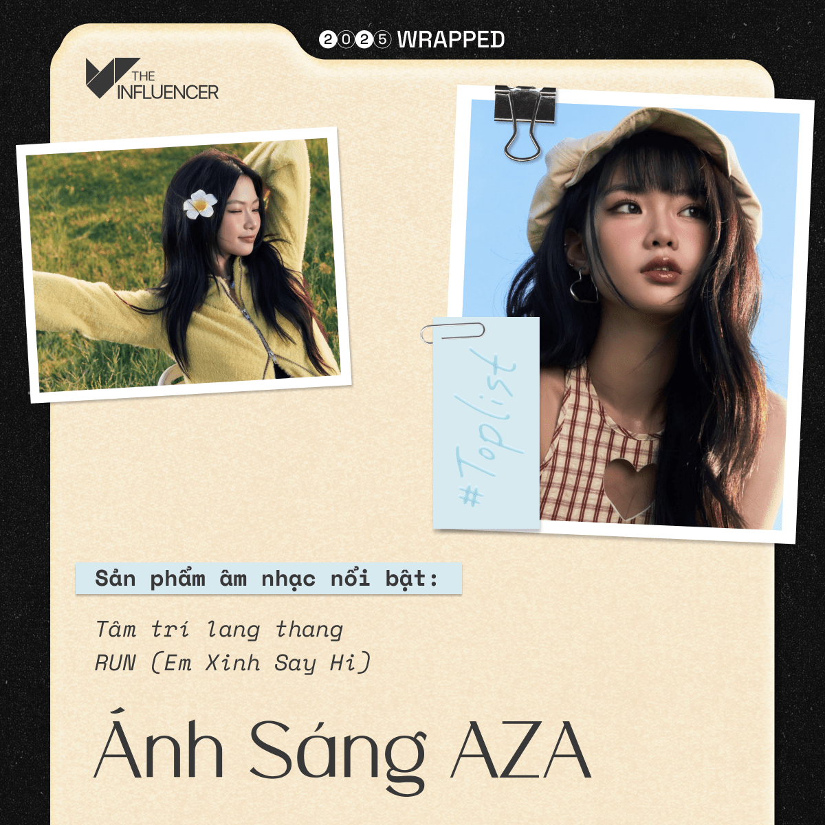 Ánh Sáng AZA đã có bước chuyển mạnh mẽ trong 2025 khi cô không còn chỉ là cựu thành viên của SGO48 mà còn trở thành một trong những gương mặt Gen Z năng động nhất trên đường đua nhạc Việt.