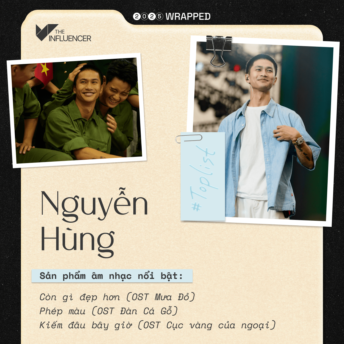 Không chỉ dừng lại ở đó, Nguyễn Hùng còn lấy đi nước mắt của khán giả thông qua ca khúc Kiếm đâu bây giờ - OST của bộ phim Cục vàng của ngoại. Hai ca khúc liên tiếp tạo thành hiện tượng giúp Nguyễn Hùng trở thành nghệ sĩ tiêu biểu theo đuổi sự chân thành và sức nặng cảm xúc trong âm nhạc. Với chất nghệ sĩ tự nhiên, tinh thần cầu tiến và khả năng chạm vào những tầng cảm xúc khác nhau, Nguyễn Hùng cho thấy anh không chỉ là hiện tượng ngắn hạn mà còn là gương mặt đầy triển vọng của Vpop trong tương lai gần.