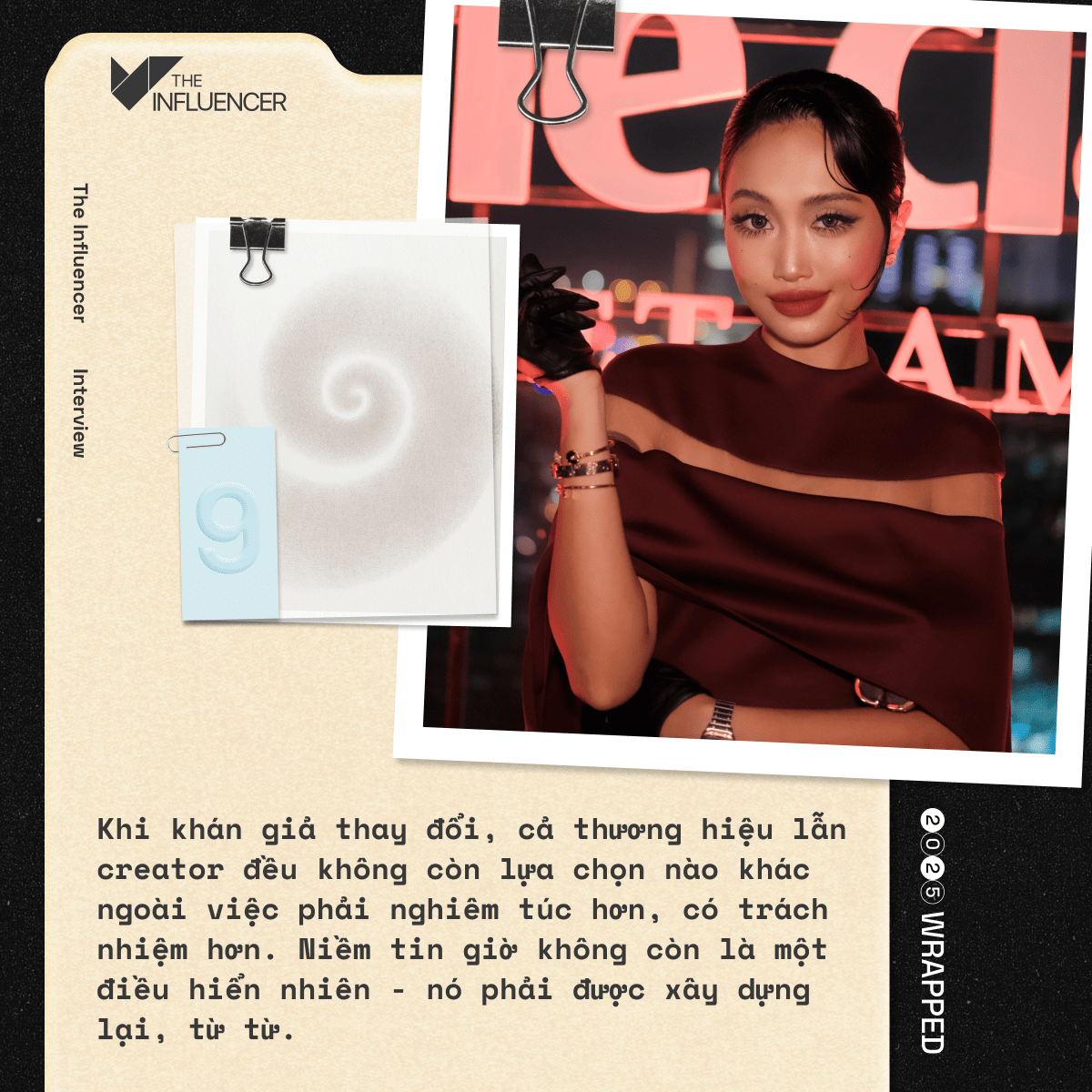 Trong cuộc trò chuyện với The Influencer, Tracey nhìn lại năm 2025 chuyển dịch đầy biến động với sự tỉnh táo của một người làm brand lâu năm và sự chân thật của một creator đang trên hành trình tự định hình, cũng như chia sẻ góc nhìn sâu sắc khi bước vào chu kỳ mới của hành trình cá nhân và sáng tạo năm 2026.