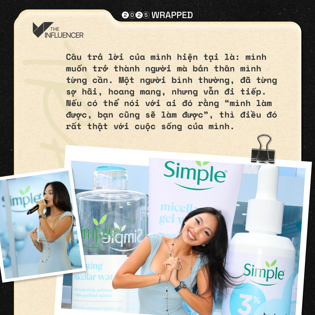 Câu trả lời của mình hiện tại là: mình muốn trở thành người mà bản thân mình từng cần. Một người bình thường, đã từng sợ hãi, hoang mang, nhưng vẫn đi tiếp. Nếu có thể nói với ai đó rằng “mình làm được, bạn cũng sẽ làm được”, thì điều đó rất thật với cuộc sống của mình. Khi thấy khán giả tương tác với nội dung theo cách rất cá nhân, rất sâu, mình hiểu rằng mình đang mang lại giá trị cho một nhóm người nhất định. Với mình, đó là những giá trị thật mình muốn đem đến.