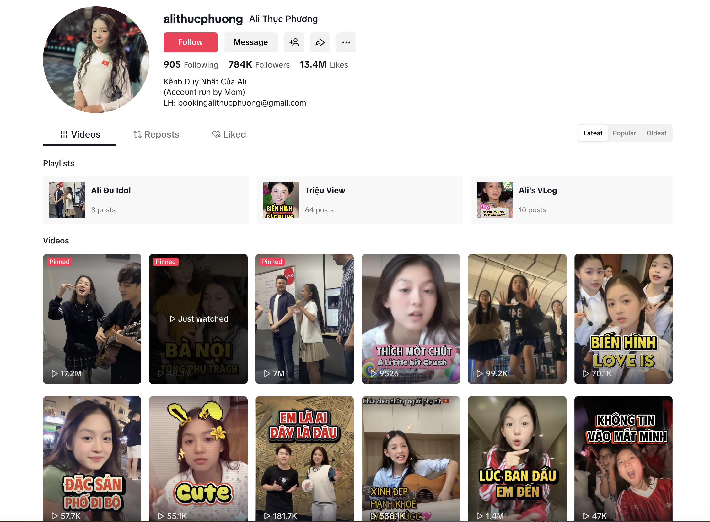 Kênh TikTok của Ali hiện có hơn 783.000 người theo dõi, nơi cô bé chia sẻ những khoảnh khắc đời thường, hoạt động nghệ thuật và học tập ngoại khóa. Cách Ali xuất hiện tự nhiên, không cầu kỳ nhưng vẫn truyền cảm hứng cho các bạn đồng trang lứa bởi tính chân thực trở thành sức hút của cô bé thay vì sự hoàn hảo của một hình tượng - đây cũng chính là điểm khác biệt của thế hệ mới.
