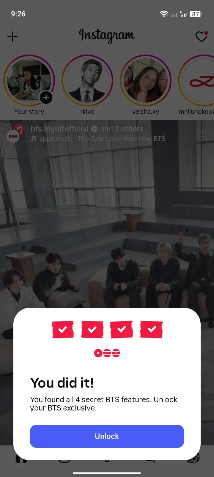 Cụ thể, trên Instagram, khi người dùng sử dụng các ca khúc trong album ARIRANG cho story, gắn nhạc trên profile hoặc thực hiện một số thao tác liên quan, họ sẽ lần lượt mở khóa những tấm vé “secret”. Khi hoàn thành đủ 4 nhiệm vụ, phần thưởng nhận được là một video độc quyền từ nhóm. Trong khi đó, TikTok cũng nhanh chóng bắt trend bằng cách tích hợp trực tiếp vào hành vi tìm kiếm, khi người dùng gõ tên BTS trên thanh search sẽ xuất hiện một video quảng bá ngắn, đi kèm các nhiệm vụ nhỏ giúp avatar được tặng icon mũ thủy thủ - hình ảnh gắn liền với nhóm trong ca khúc chủ đề SWIM. Những tính năng này không chỉ gia tăng thời gian tương tác mà còn biến hành vi ủng hộ thần tượng thành một trải nghiệm mang tính trò chơi, từ đó thúc đẩy sự lan tỏa theo cách tự nhiên và bền vững hơn trên các nền tảng.