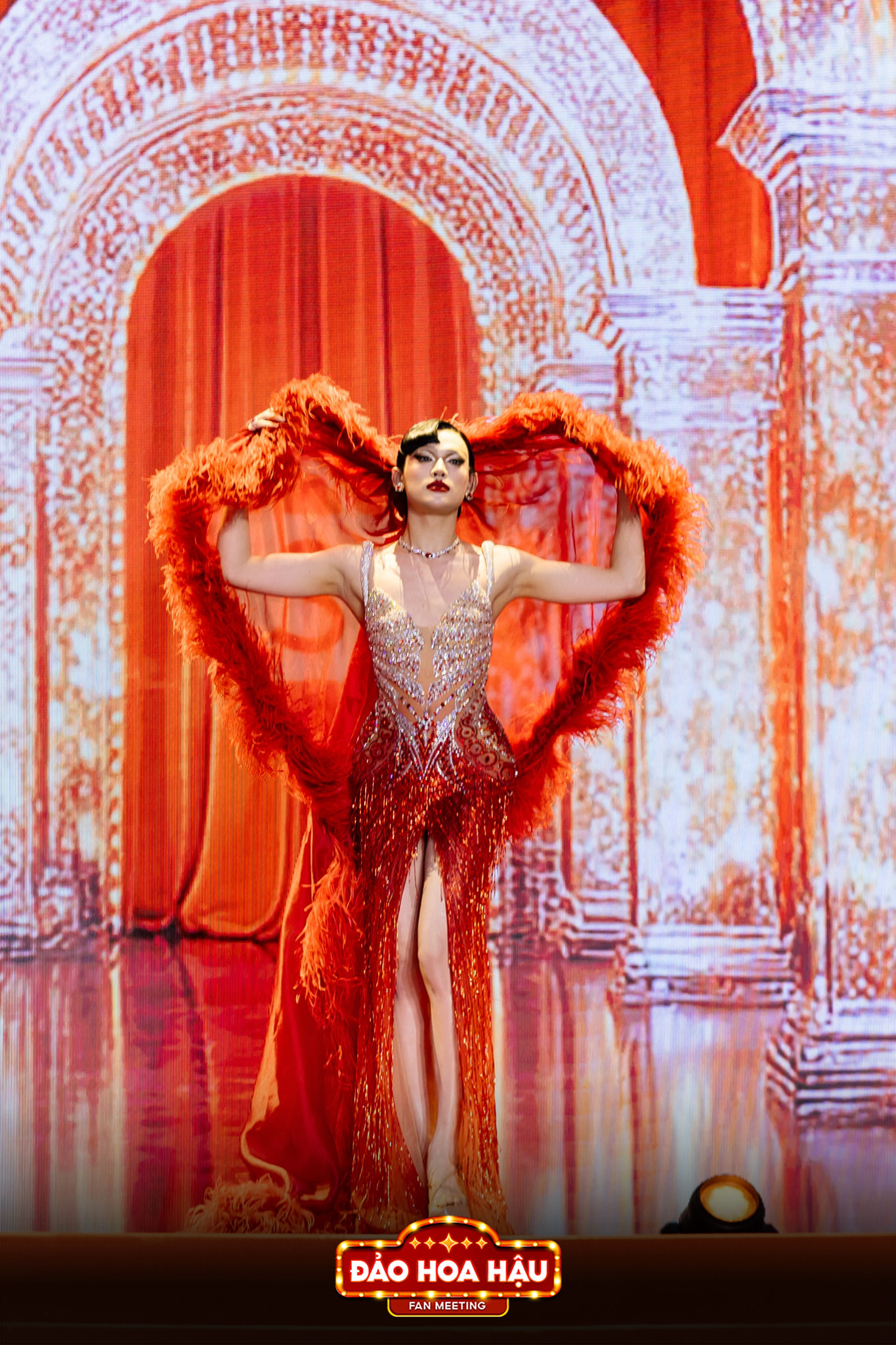 Điểm đáng nói, chương trình được thiết kế lại như một format riêng. Với chủ đề “Hoa Hậu Miền Nam”, toàn bộ Fan Meeting được xây dựng như một show hoàn chỉnh, có cấu trúc rõ ràng và xuyên suốt, nơi các phần thi được tái định hình để phù hợp với nhịp xem nhanh của nền tảng số. Từ phần giới thiệu, thi tài năng đến ứng xử, mọi thứ đều được rút gọn, tăng tốc và cài cắm nhiều điểm gây chú ý ngay lập tức. Đây là một lựa chọn có tính chiến lược, bởi livestream không cho phép khán giả kiên nhẫn như khi ngồi trong phòng, và bất kỳ khoảng lặng nào cũng có thể khiến họ rời đi.