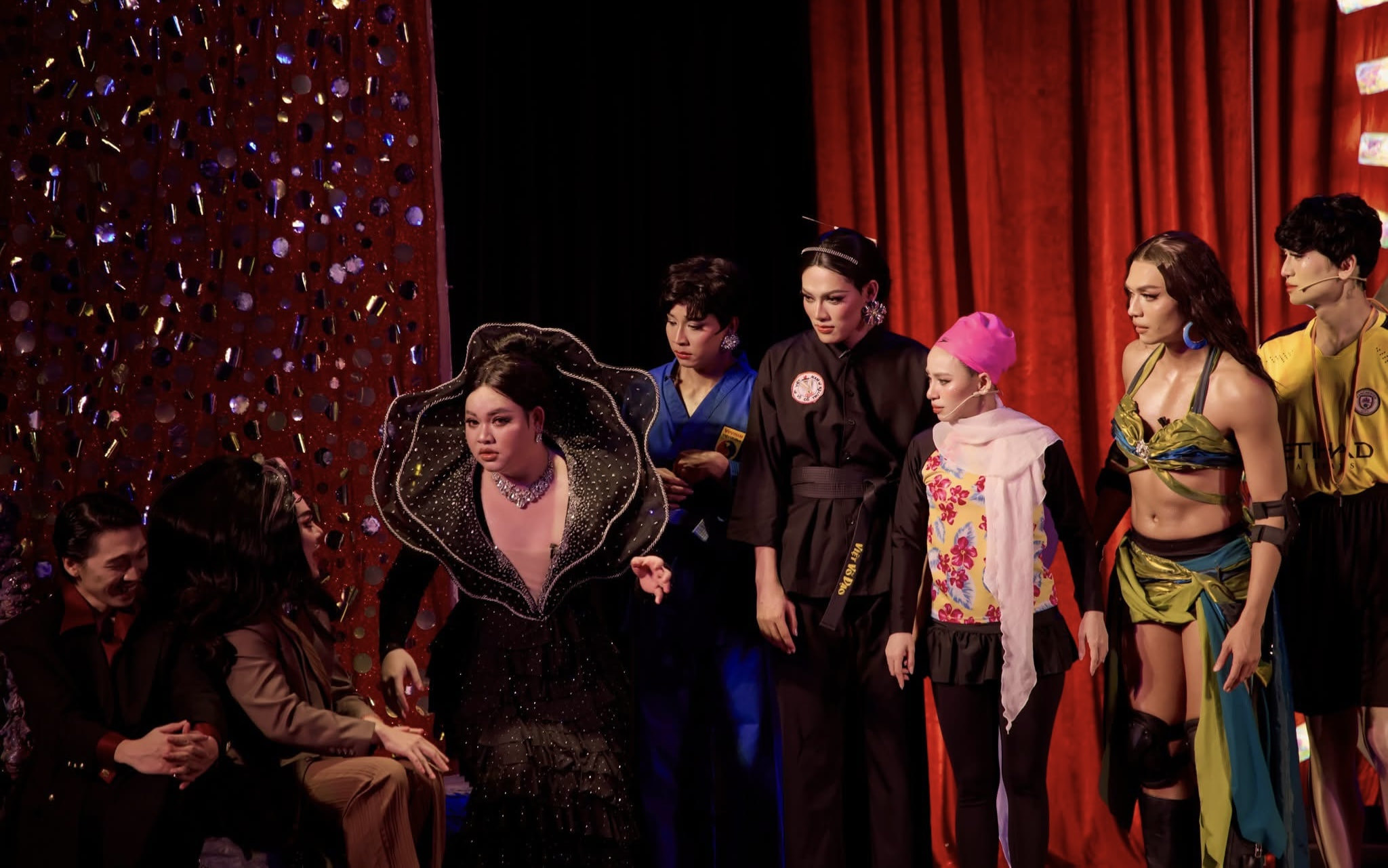 Câu chuyện trung tâm của “Đảo Hoa Hậu” thực chất khá đơn giản khi xoay quanh một cô sinh viên nghèo mang trên vai gánh nặng chữa bệnh cho mẹ, từ đó bước chân vào một cuộc thi sắc đẹp với hy vọng đổi đời. Tuy nhiên, thay vì khai thác theo hướng tâm lý nặng nề, vở diễn lại chọn cách lật mặt thế giới hoa hậu bằng góc nhìn châm biếm, phơi bày hàng loạt góc khuất như mua bán giải thưởng, những thỏa thuận ngầm hay các chiêu trò hãm hại nhau sau ánh đèn sân khấu. Điều đáng nói là tất cả những chất liệu này không được kể theo kiểu kịch nói truyền thống mà được xây dựng theo một cấu trúc gần với tạp kỹ, nơi mỗi phân đoạn đều là một màn trình diễn độc lập nhưng vẫn liên kết với cuộc thi Hoa Hậu.