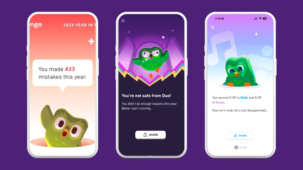 Với Duolingo Year in Review, hành trình học tập trở thành một trò chơi thú vị với những thành tựu được tôn vinh, khích lệ người dùng tiếp tục gắn bó và tự hào chia sẻ tiến bộ của mình với cộng đồng, điều mà nhiều nền tảng giáo dục khác hoàn toàn có thể học hỏi để gia tăng mức độ gắn kết.