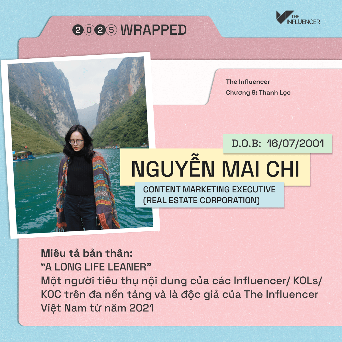 Xin chào The Influencer và các bạn độc giả. Mình là Mai Chi, 25 tuổi, Content Marketing Executive tại một tập đoàn về bất động sản. Đồng thời, mình cũng là một độc giả gắn bó 5 năm cùng The Influencer.