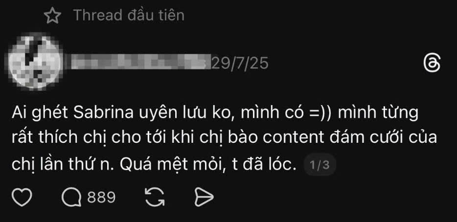 Threads bắt đầu những ý kiến trái chiều xoay quanh content của Sabrina Uyên Lưu