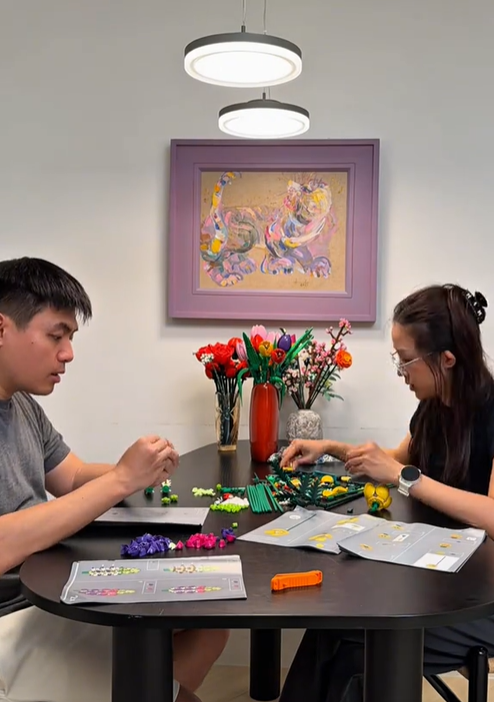 Mùa Valentine năm nay, bộ flower lego (lego lắp ghép hoa) hot rần rần trên TikTok nhờ độ đẹp mắt và sự tỉ mỉ. Không nằm ngoài trend này, vợ chồng Salim - Long Hạt Nhài đã cùng lắp flower lego - sở thích “như hồi cấp 2”, có thời gian vui vẻ và chất lượng bên nhau trong dịp Valentine gần kề. Để hoàn thành bộ lego, các cặp đôi sẽ cần kha khá thời gian, vừa lắp ghép, vừa trò chuyện, một không gian lý tưởng để gắn kết hơn trong mùa Valentine này.