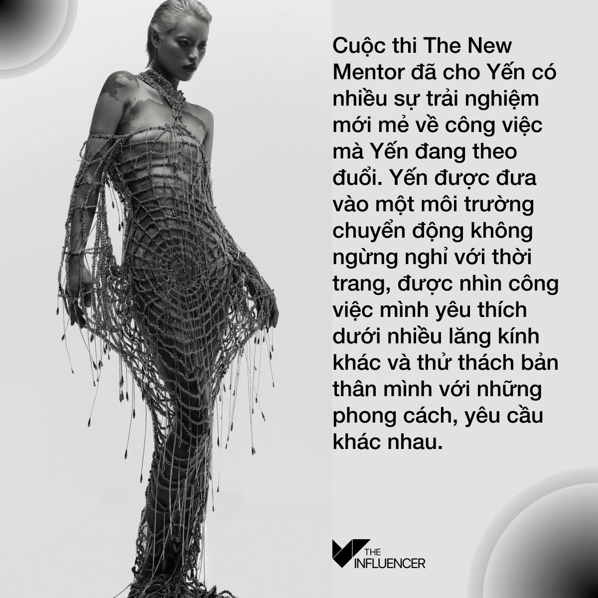 Cuộc thi The New Mentor đã cho Yến có nhiều sự trải nghiệm mới mẻ về công việc mà Yến đang theo đuổi. Yến được đưa vào một môi trường chuyển động không ngừng nghỉ với thời trang, được nhìn công việc mình yêu thích dưới nhiều lăng kính khác và thử thách bản thân mình với những phong cách, yêu cầu khác nhau. Cuộc thi này đã cho Yến có thêm nhiều kinh nghiệm hơn, nhiều kĩ năng hơn để chinh chiến, có thêm góc nhìn mới về ngành thời trang Việt Nam, thêm những người bạn, người thầy mới, và quan trọng nhất là cho Yến thêm sự tự tin để bước ra khỏi vùng an toàn của mình.