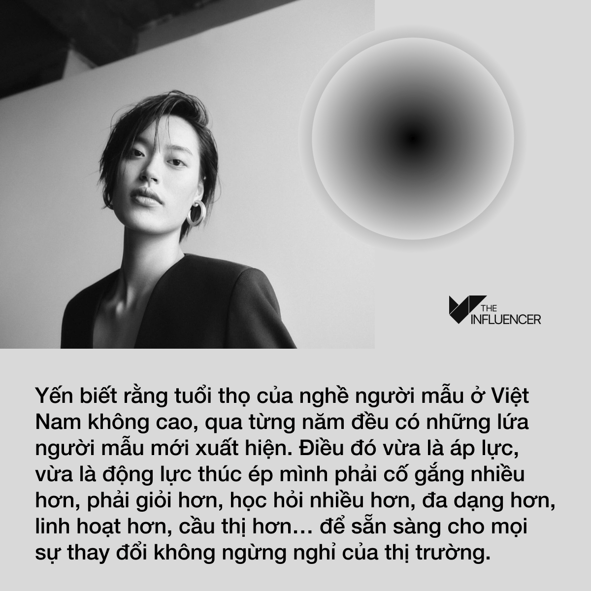 Chắc đó không phải con đường mà Yến nghĩ sẽ phù hợp với mình ở thời điểm hiện tại. Lúc này, Yến chỉ muốn tập trung thật tốt vào công việc của một người mẫu và kết nối với khán giả qua những câu chuyện, lát cắt về đời sống thời trang.