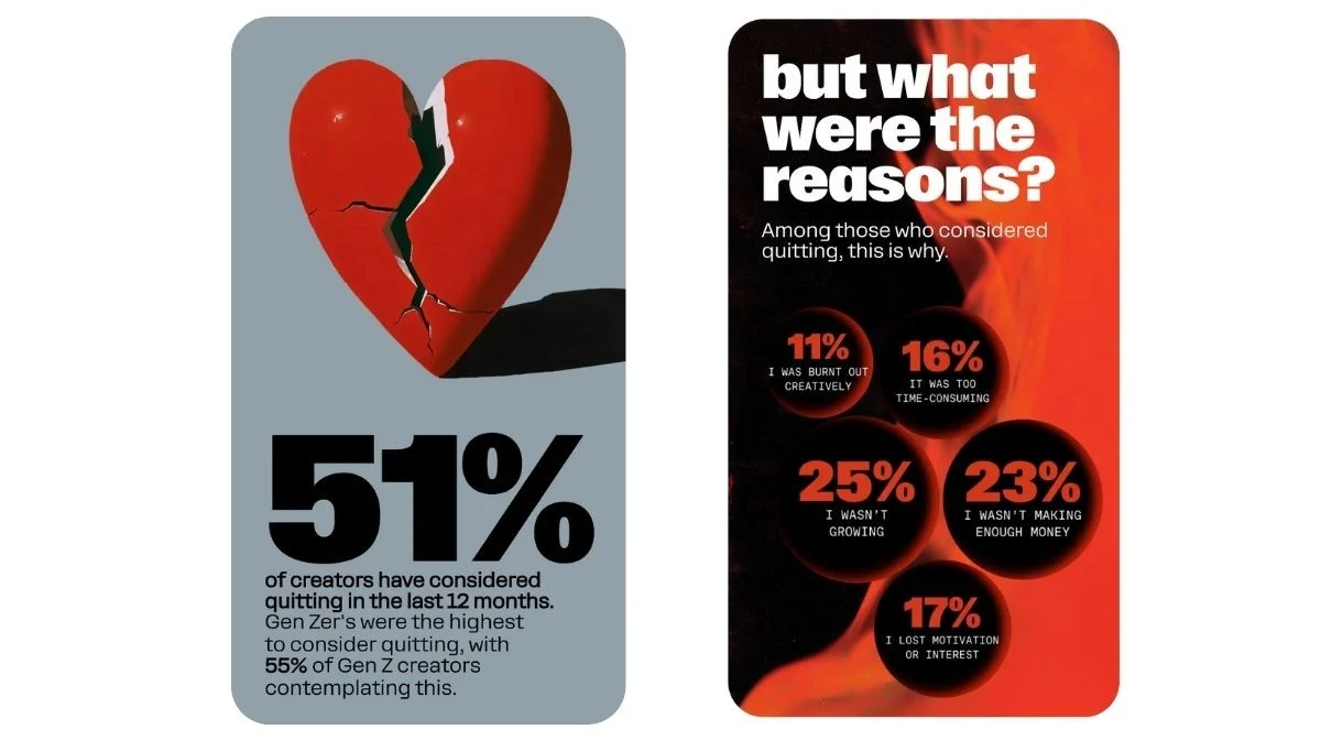 51% creator thừa nhận từng nghĩ đến việc bỏ nghề trong 12 tháng qua.