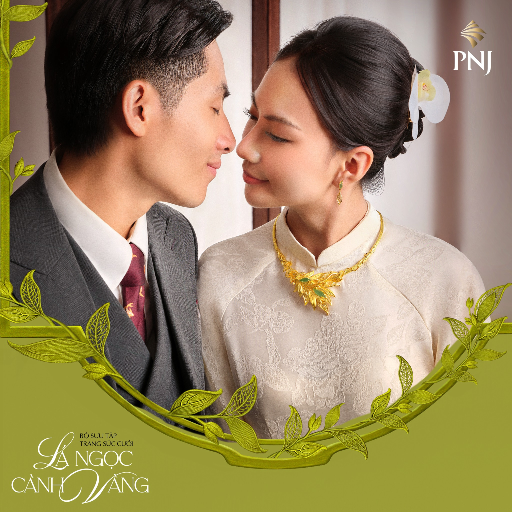 PNJ là một trong những thương hiệu tiên phong cho xu hướng này khi ra mắt chiến dịch Có Nhau, Mình Cưới. Thay vì quảng bá bằng hình ảnh cầu kỳ, PNJ lựa chọn cách kể chuyện gần gũi và chân thành, lấy cảm hứng từ hành trình yêu thương và gắn bó của nhiều cặp đôi. Những bộ trang sức cưới như Lá Ngọc Cành Vàng được giới thiệu trong không khí của tình yêu, nơi mỗi món đồ trở thành biểu tượng cho sự đồng hành và tin cậy.