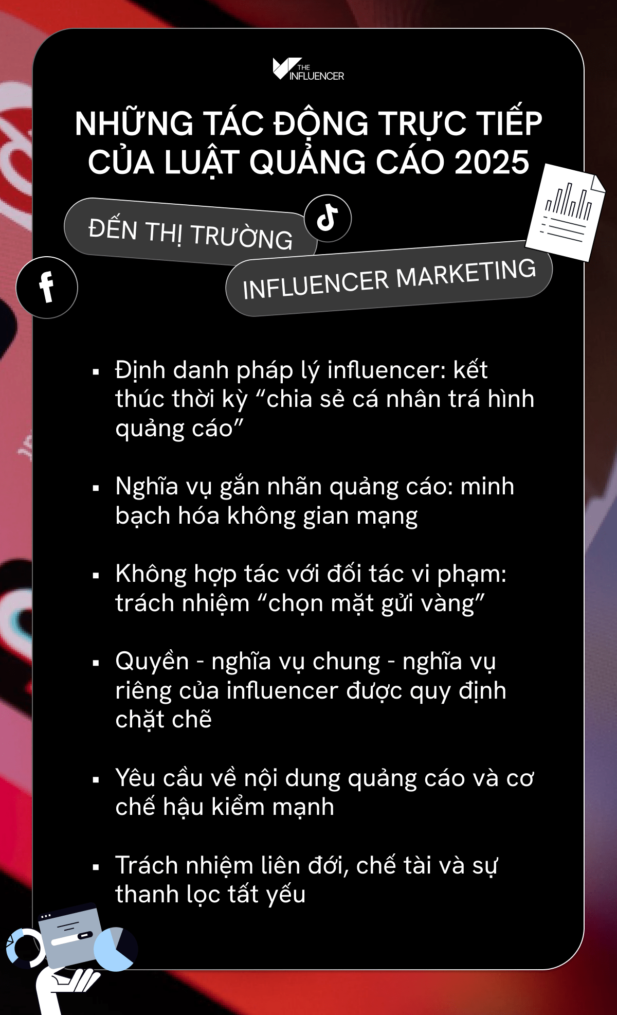 Quy định này lần đầu tiên đưa influencer, KOL, KOC vào hệ thống chủ thể chịu sự điều chỉnh trực tiếp của Luật Quảng cáo, thay vì đứng ngoài hoặc chỉ bị điều chỉnh gián tiếp thông qua nhãn hàng như trước đây.