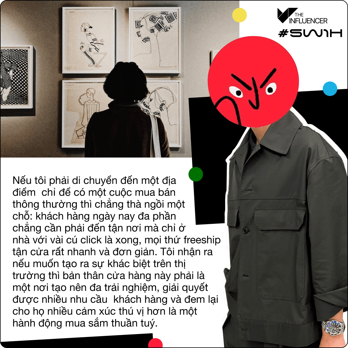 Khi mới về nước năm 2016, tôi nhận thấy người mua luôn nghĩ rằng các brands lớn khi đến Việt Nam đều không có giá tốt, có lẽ vì lý do đó nên họ chỉ coi đấy là nơi dừng chân, đến để ngắm, thử và… về order. Nhưng càng về sau này người mua càng quan tâm đến các trải nghiệm ở cửa hàng hơn, đồng thời chính các thương hiệu cũng chủ động điều chỉnh chiến lược giá và đặt một khung giá không quá chênh lệch với nước ngoài. Vậy nên sức mua của người mua Việt Nam càng ngày càng lớn, nhưng điều đó cũng tỉ lệ thuận với nhu cầu trải nghiệm khi mua hàng của họ. Cùng một món đồ đó, cùng một giá tiền đó, họ cần có những trải nghiệm như khi họ bước chân vào cửa hàng của thương hiệu ấy ở nước ngoài.