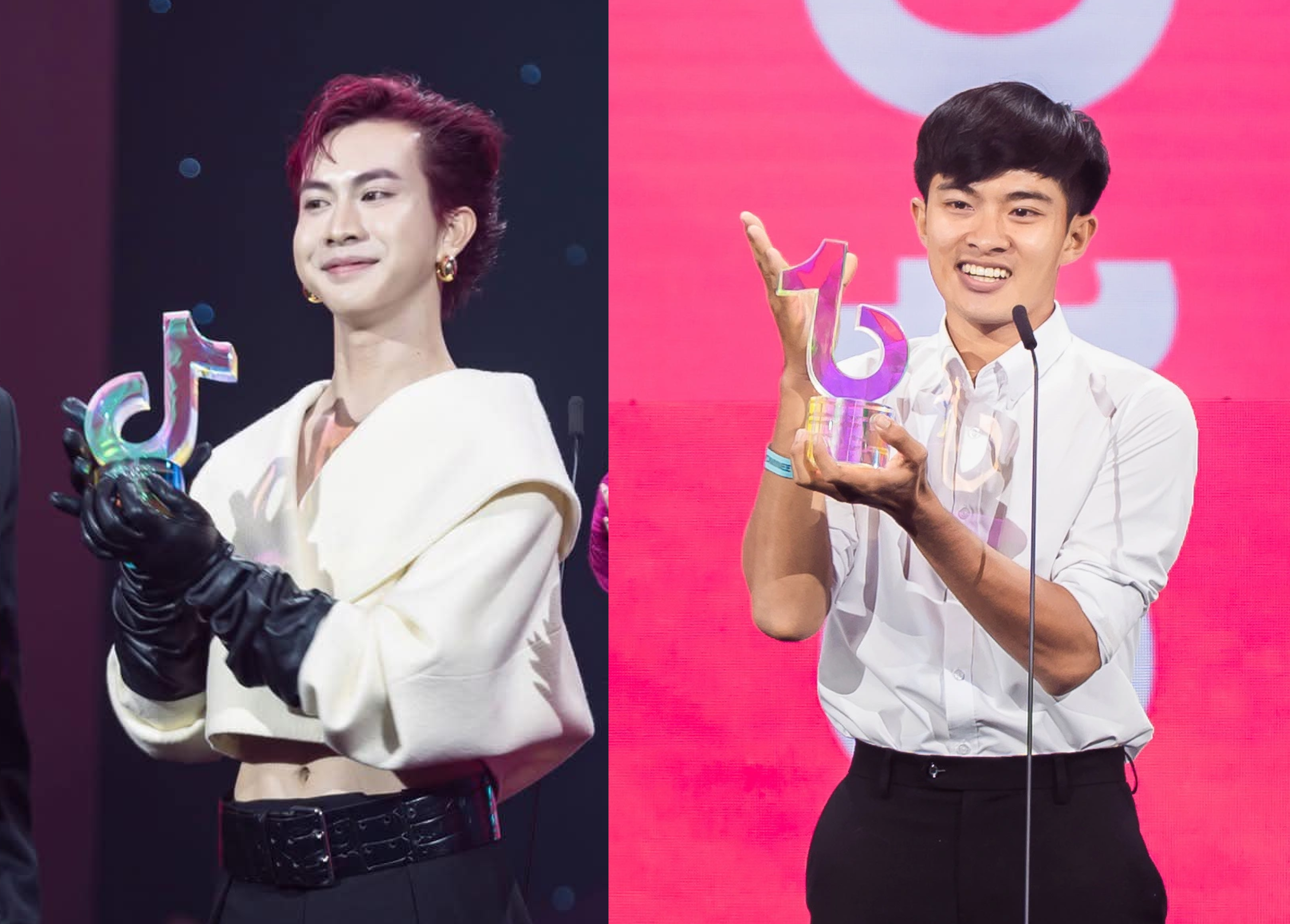 Khiết Đan và Lê Tuấn Khang nhận giải thưởng "Nhà sáng tạo nội dung Giải trí của năm” tại TikTok Awards Việt Nam 2024 (Nguồn ảnh: TikTok)