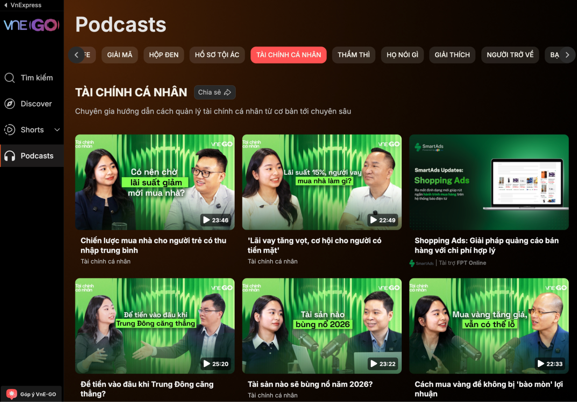 Là một trong những nền tảng báo chí uy tín tại Việt Nam, VnExpress không chỉ mạnh ở tin tức mà còn liên tục “làm mới” cách tiếp cận nội dung để phù hợp với thói quen tiêu thụ của độc giả hiện đại. Trong đó, tuyến podcast được đầu tư chỉn chu, trở thành một điểm chạm đáng chú ý, đặc biệt với series “Tài chính cá nhân”.