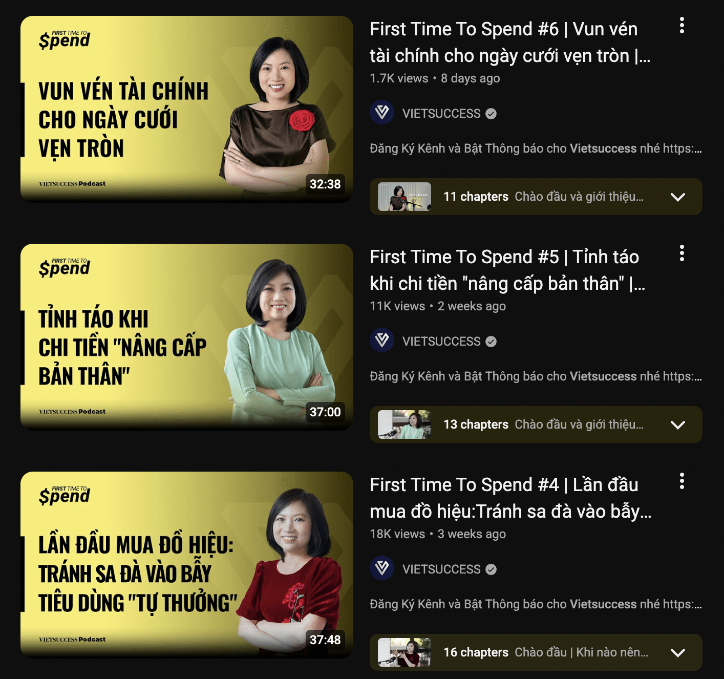 Định vị là một nền tảng nội dung và cộng đồng tri thức dành cho người đi làm, Vietsuccess (với hơn 518.000 subscribers trên YouTube) tiếp tục mở rộng hệ sinh thái podcast với mini series “First Time To Spend - Lần đầu chi tiêu”. Lần này, Vietsuccess khai thác những quyết định tài chính đầu đời - nơi người trẻ thường phải tự học bằng sai lầm.