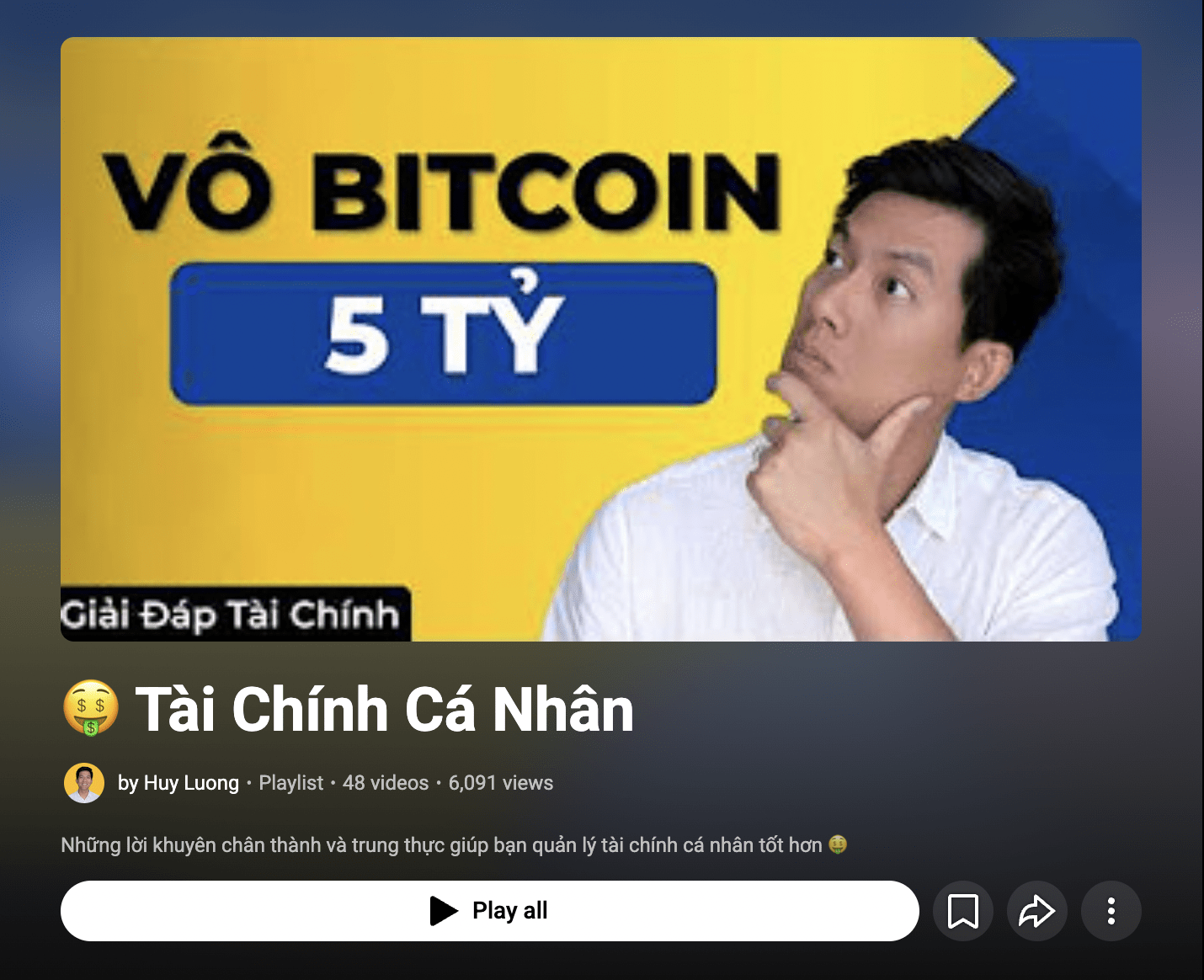 Sở hữu nền tảng Thạc sĩ MBA từ University of Toronto và hiện là Manager Quản lý Rủi ro tại ngân hàng BMO, Huy Luong mang đến một màu sắc khá khác biệt trong hệ sinh thái creator về tài chính cá nhân. Kênh YouTube với hơn 31.900 subscribers không đi theo hướng “truyền cảm hứng làm giàu nhanh”, mà tập trung vào việc giải thích tài chính, đầu tư và cả yếu tố tâm lý – những khía cạnh thường bị bỏ qua nhưng lại ảnh hưởng trực tiếp đến quyết định tiền bạc.