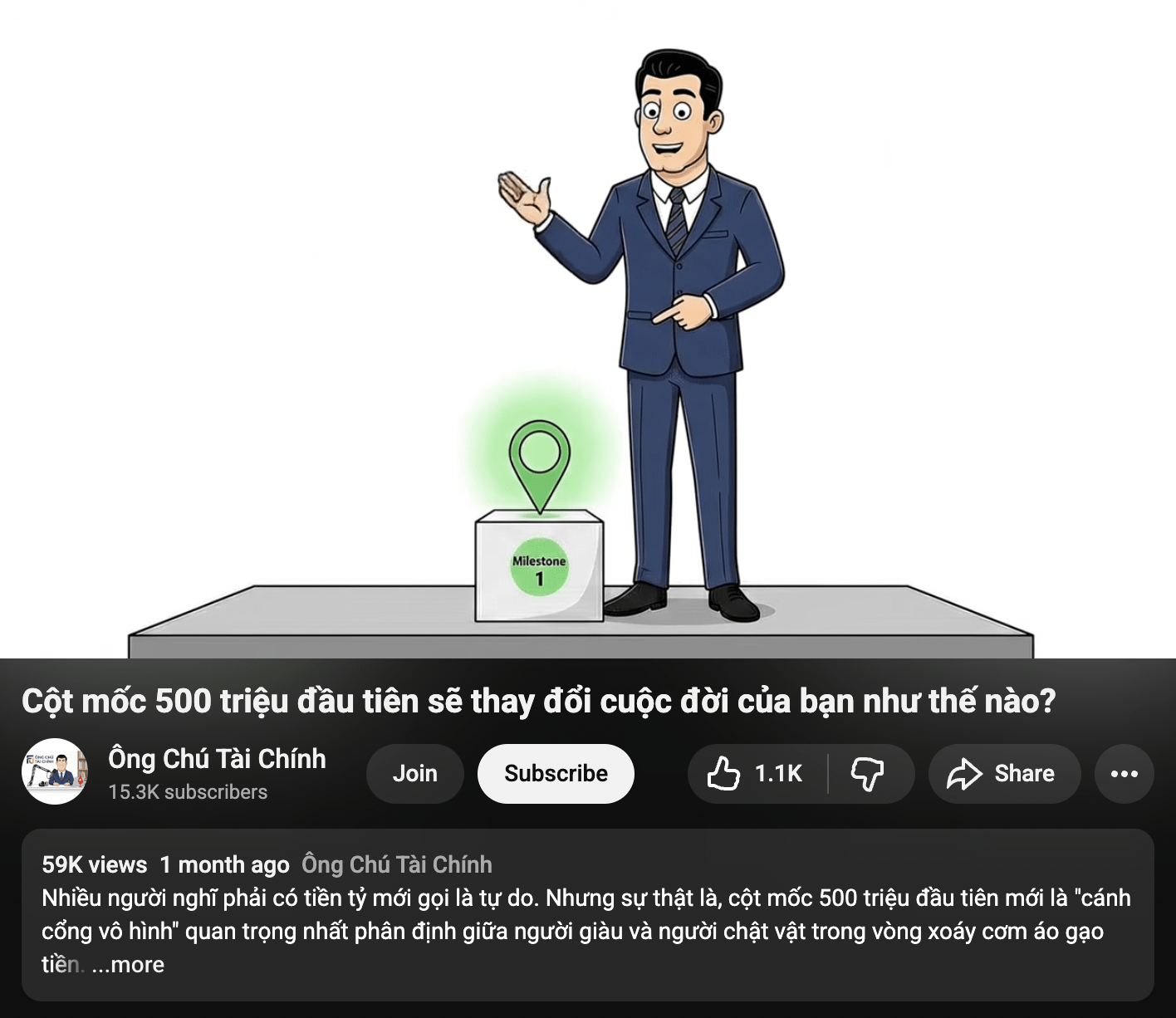Về nội dung, kênh khai thác các chủ đề mang tính nền tảng nhưng vẫn gắn với thực tiễn. Từ việc giải thích toàn bộ hệ thống tài chính trong một video dài, phân biệt các loại quỹ đầu tư, đến những cột mốc tài chính như “500 triệu đầu tiên sẽ thay đổi cuộc đời ra sao” - tất cả đều được trình bày theo hướng dễ hiểu, có tính hệ thống.