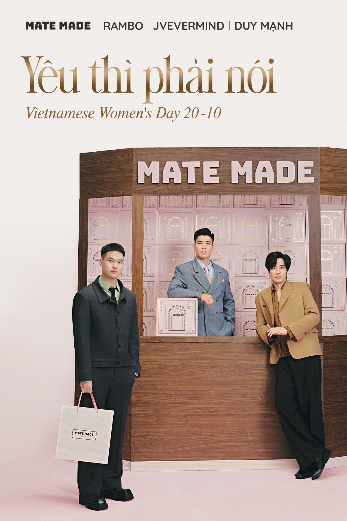 Trong dịp 20 tháng 10 năm nay, MATE MADE đã tạo nên một chiến dịch đầy thú vị mang tên “Yêu Thì Phải Nói”, đánh trúng tâm lý của cánh mày râu - những người thường là người chi tiền và đưa ra quyết định quà tặng trong ngày đặc biệt dành cho phái đẹp. Thay vì hướng đến thông điệp cảm tính hay tôn vinh phụ nữ theo cách quen thuộc, thương hiệu này chọn tiếp cận từ góc nhìn của đàn ông, khuyến khích họ bày tỏ tình cảm bằng hành động thiết thực. MATE MADE hiểu rằng trong văn hóa Việt, nhiều nam giới ngại thể hiện tình cảm trực tiếp, và một món quà tinh tế sẽ trở thành cách nói lời yêu vừa chân thành vừa dễ dàng hơn.