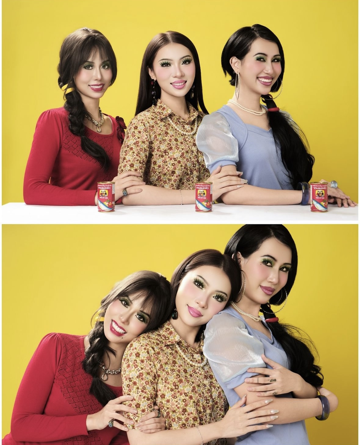 Một trong những tạo hình được cộng đồng mạng yêu thích nhất trong mùa Halloween năm nay chính là hình ảnh “Cá hộp 3 cô gái” được tái hiện bởi Mai - Mỹ Mỹ - PAY. Đây có lẽ là màn hóa trang sáng tạo nhất, ấn tượng và… “ám ảnh” nhất mùa lễ này bởi phong cách thời trang xưa cũ cùng lớp makeup đậm của 3 cô gái trên lon cá hộp quen thuộc của mỗi gia đình. Cộng đồng mạng không khỏi cảm thán “đỉnh nóc, kịch trần” trước màn hóa trang sáng tạo và bất ngờ có 1-0-2 này.