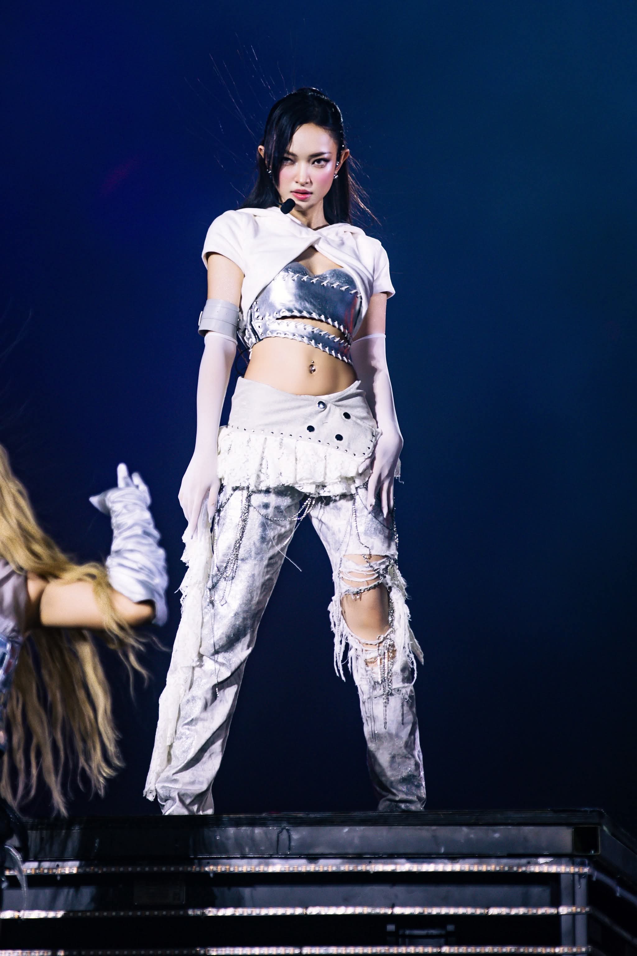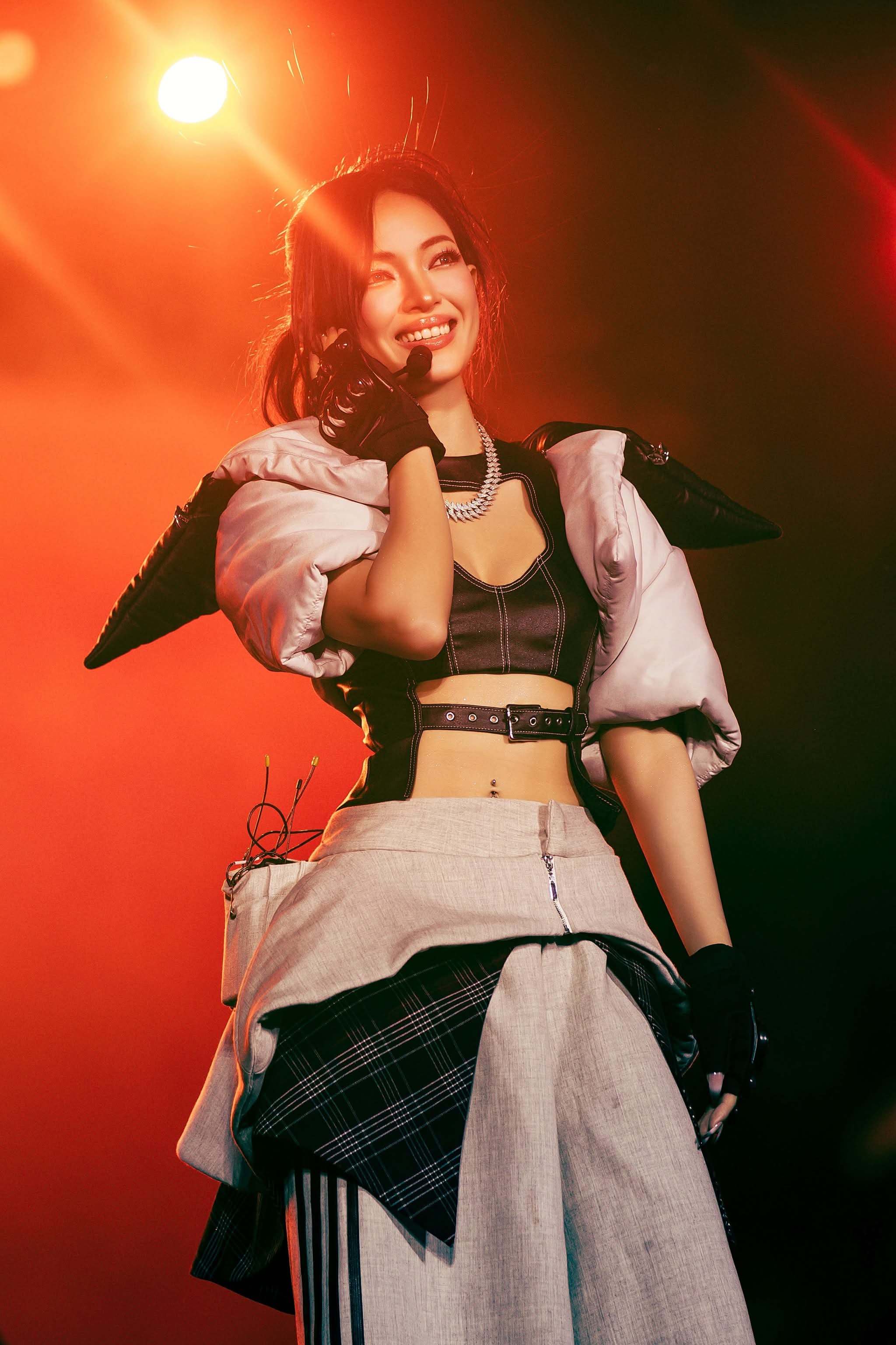 Đến tiết mục “Run”, không khí được đẩy lên cao trào với phần dàn dựng hiện đại, nhấn mạnh tinh thần mạnh mẽ và quyết liệt. Châu Bùi cho thấy khả năng làm chủ nhịp điệu cùng thần thái cuốn hút, khiến khán giả bị lôi cuốn vào màn trình diễn.
