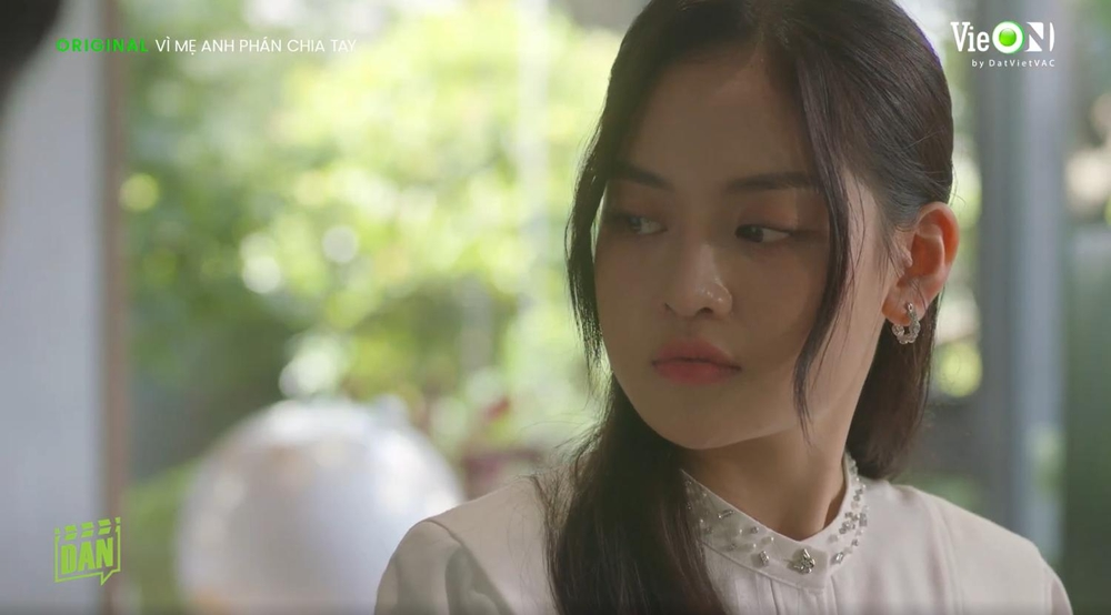 Trong “Vì mẹ anh phán chia tay”, vai Thanh Tâm là bước tiến rõ nét. Nhân vật đòi hỏi sự chuyển đổi giữa hai giai đoạn, từ một nữ sinh trong trẻo đến hình ảnh trưởng thành, thực tế hơn. Lợi thế ngoại hình giúp Tam Triều Dâng “hack tuổi” thuyết phục, nhưng điểm đáng nói là cách cô giữ nhịp diễn nhất quán, không sa vào cường điệu. Sự mềm mại trong biểu đạt khiến Thanh Tâm trở thành điểm cân bằng cảm xúc, đủ nhẹ để tạo thiện cảm nhưng cũng đủ vững để giữ mạch phát triển của câu chuyện.