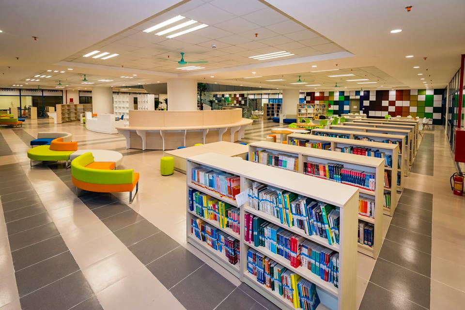 Thư viện Phạm Văn Đồng thiết kế 4 tầng, được đầu tư 11 triệu USD để phục vụ 600.000 sinh viên và 27.000 giảng viên (Nguồn ảnh: Thư viện Đại học Kinh tế Quốc Dân)